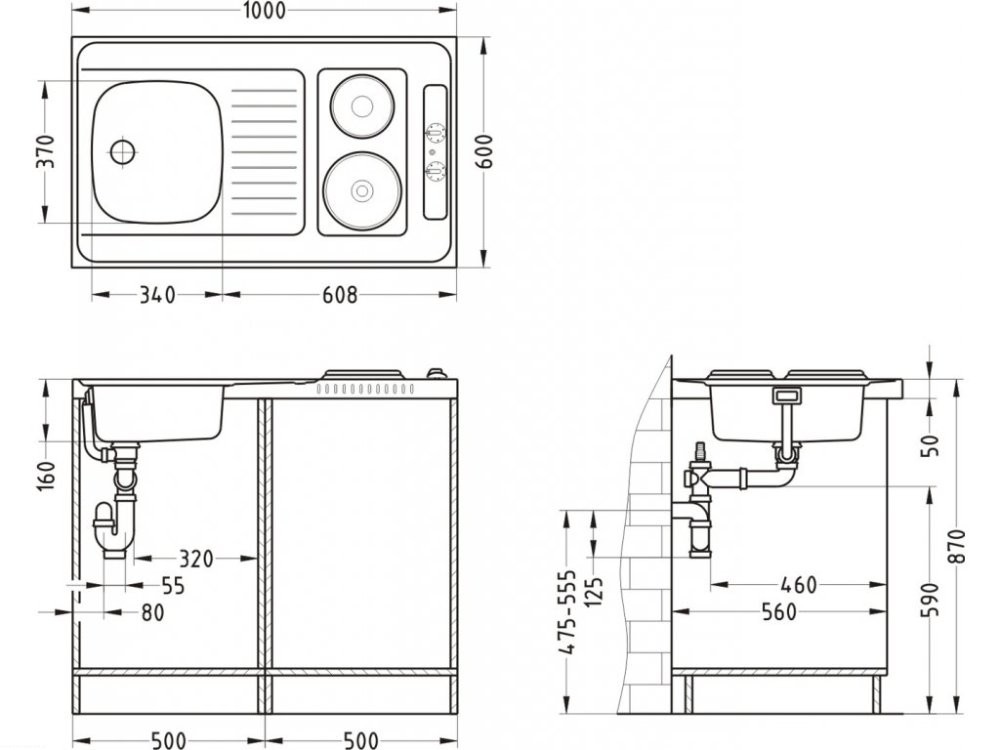 - Wymiary zlewozmywaka: 1000 x 600 mm