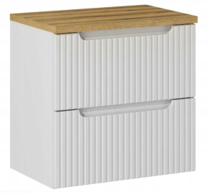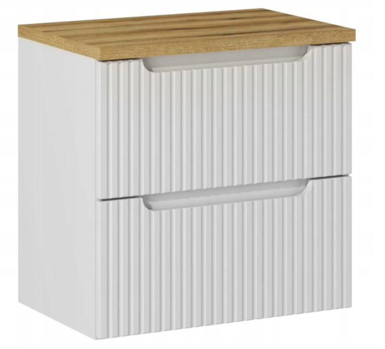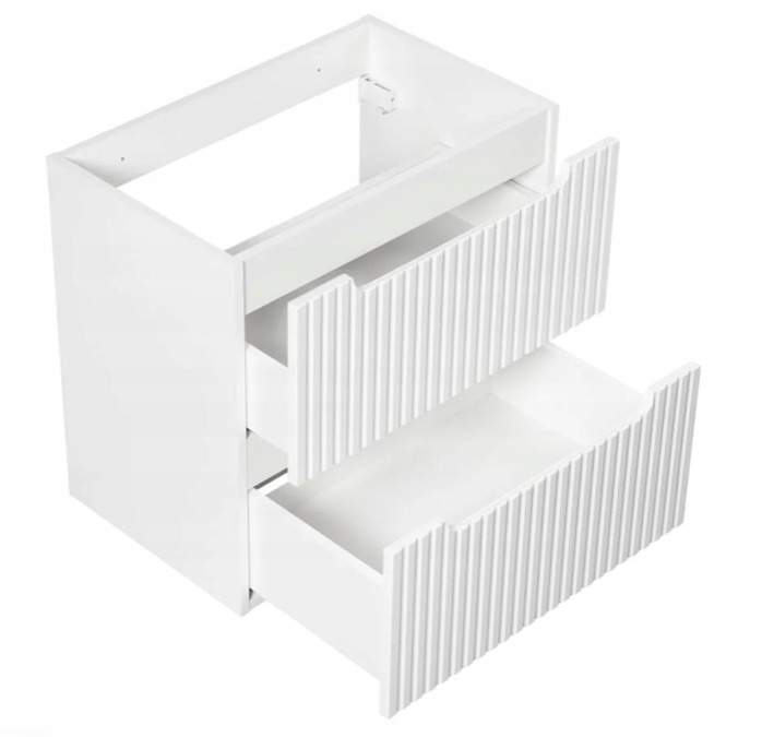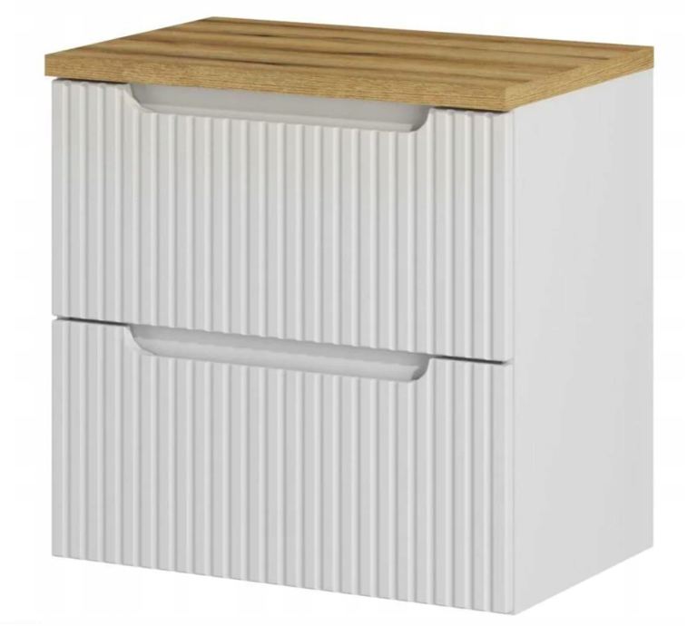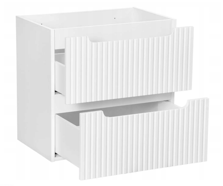 Biała Szafka pod Umywalkę z Blatem 60 cm do Łazienki Ryflowana z Szufladami