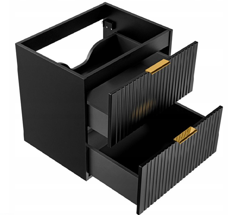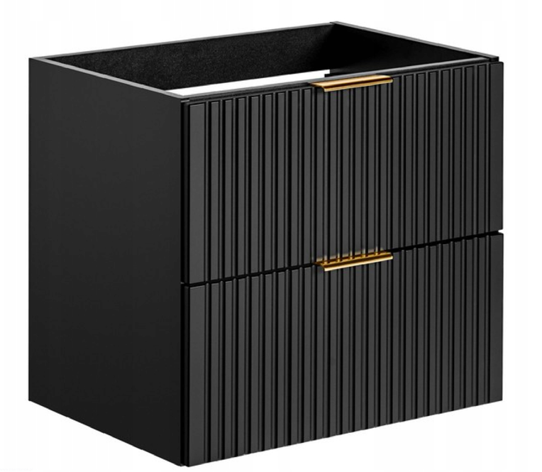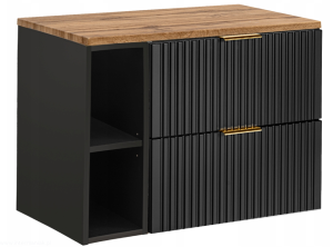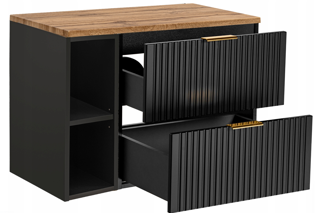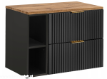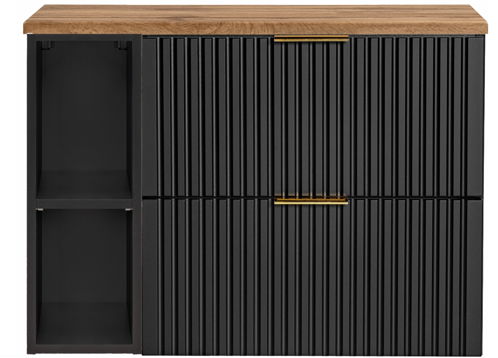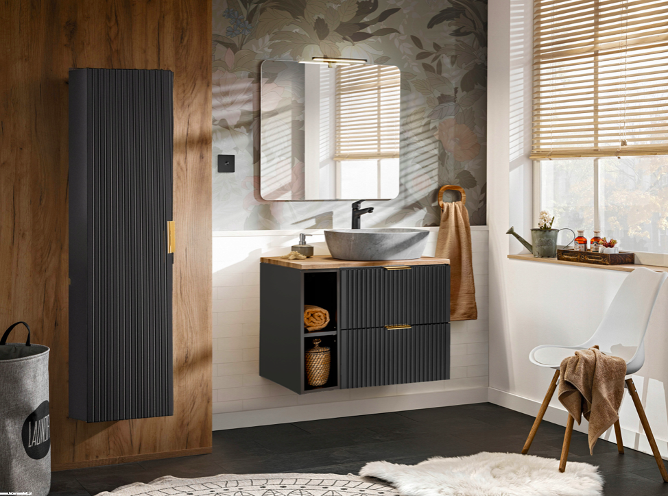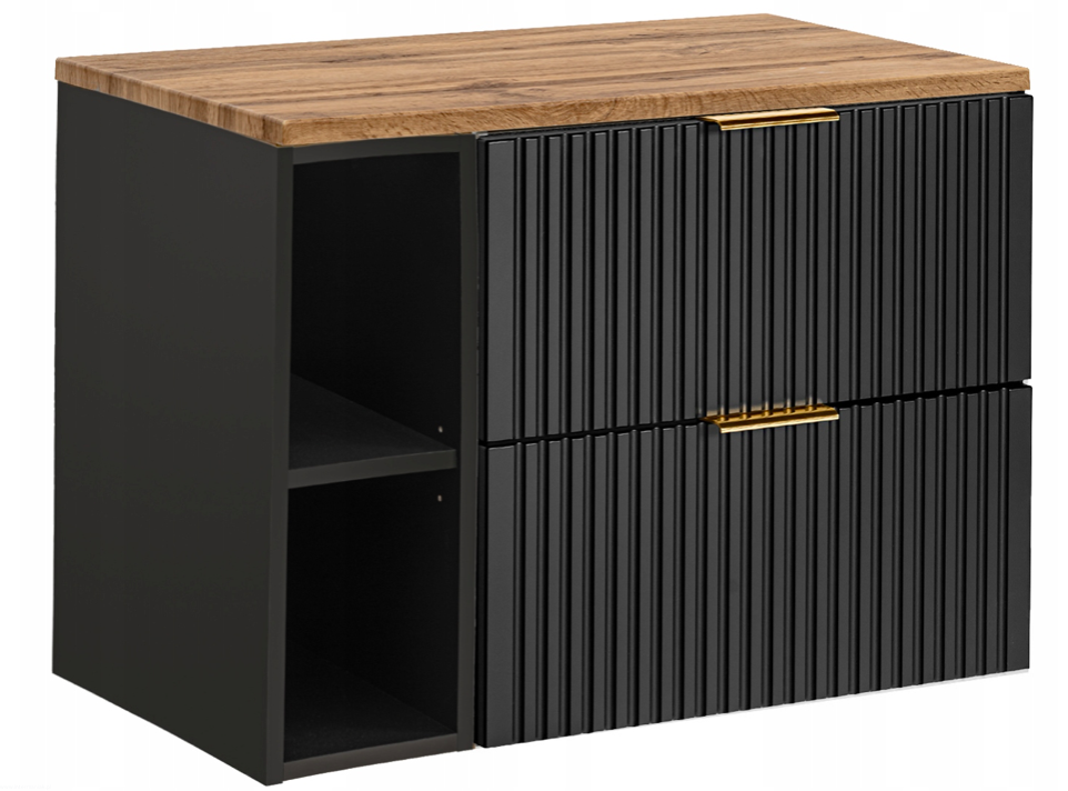 Czarna szafka pod umywalkę ADEL BLACK z regałem i blatem 80 RYFLOWANY front