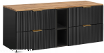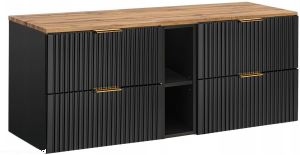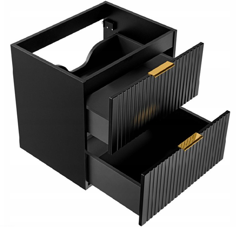 Czarna szafka pod umywalkę ADEL BLACK z regałem i blatem RYFLOWANY front