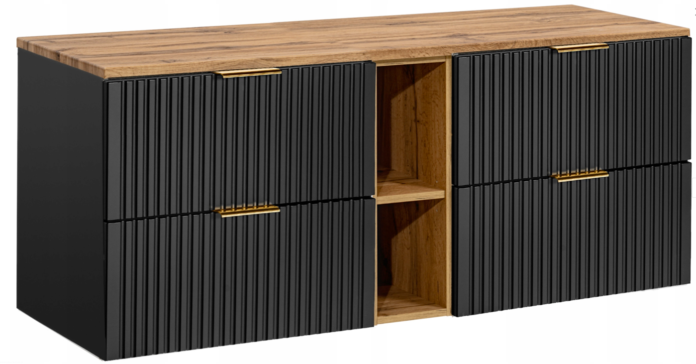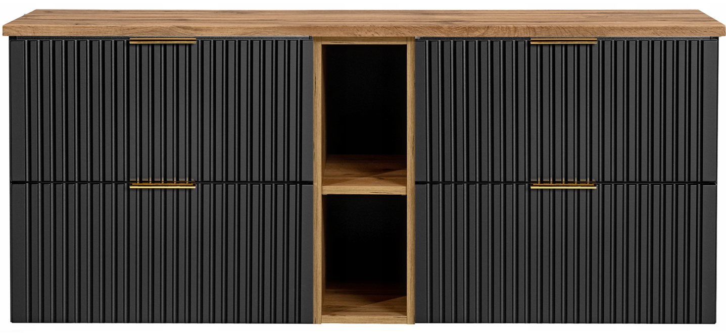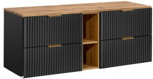 Czarna szafka pod umywalkę ADEL BLACK z regałem i blatem WOTAN 140 cm