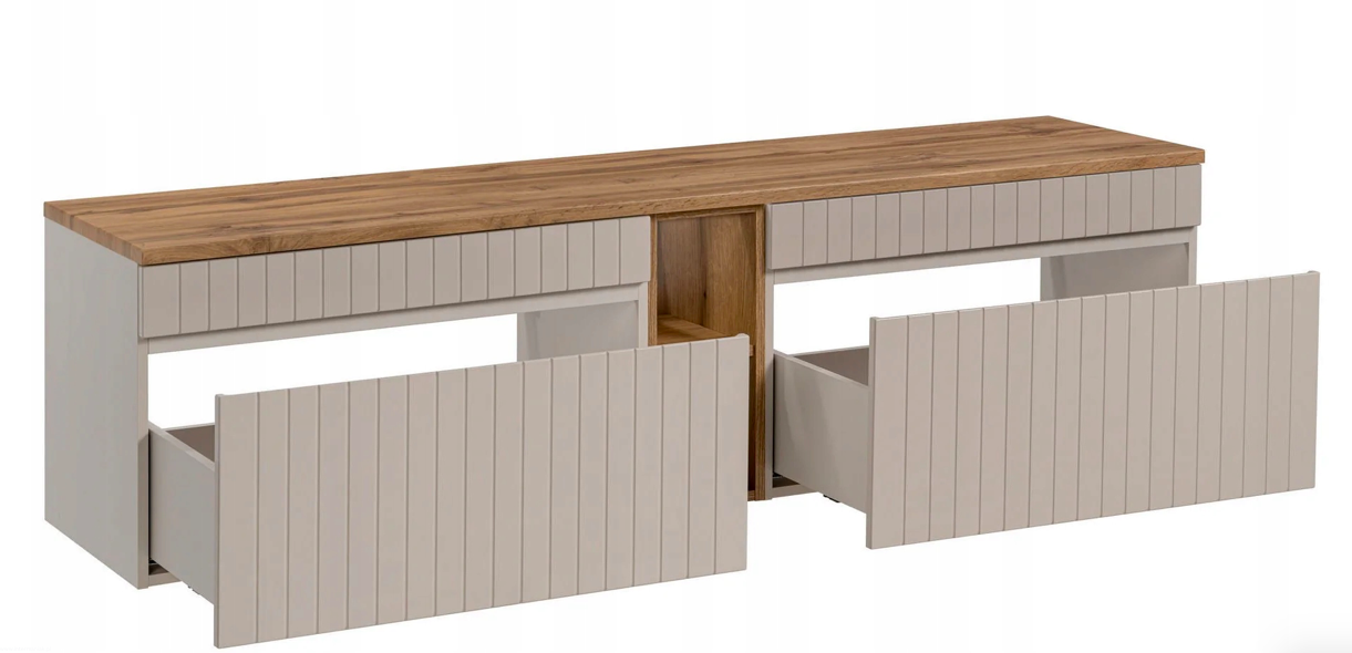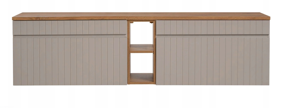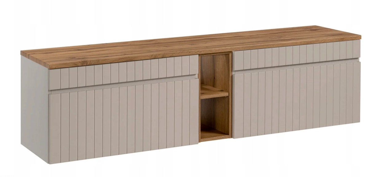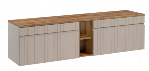 Duża Beżowa Szafka Łazienkowa pod Umywalkę 180 cm Podwójna Ryflowana ICONIC