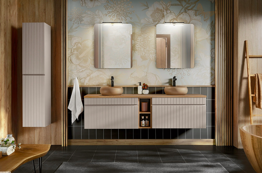 Kolekcja ICONIC CASHMERE , to projekt, w którym zostały wykorzystane pionowe frezowania we frontach . Ryflowanie, to szczególnie atrakcyjny i wszechstronny efekt wzorniczy wprowadzający ruch i płynność do każdego wnętrza łazienki. Nowoczesna kolorystyka jest naszą odpowiedzią na zmieniające się trendy oraz potrzeby wizualne klientów, które stają się coraz bardziej wyszukane.