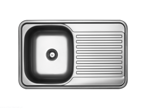 To zlew pasujący do standardowych mebli kuchennych dostępnych w wielu sklepach meblarskich – szafek o szerokości 50 cm. Posiada odpływ o wielkości 3,5 cala. Z kolei grubość blachy wynosi 0,6 mm, co sprawia, iż konstrukcja jest odporna na wgniecenia.