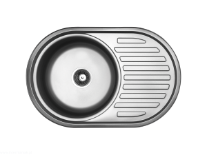 Zlewozmywak stalowy wpuszczany, 1-komorowy, z ociekaczem, w zestawie z syfonem.