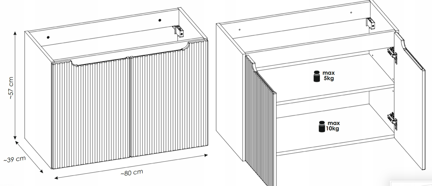 KASZMIROWA ryflowana szafka NOVA CASHMERE 82-80 2D z blatem 80 cm OAK