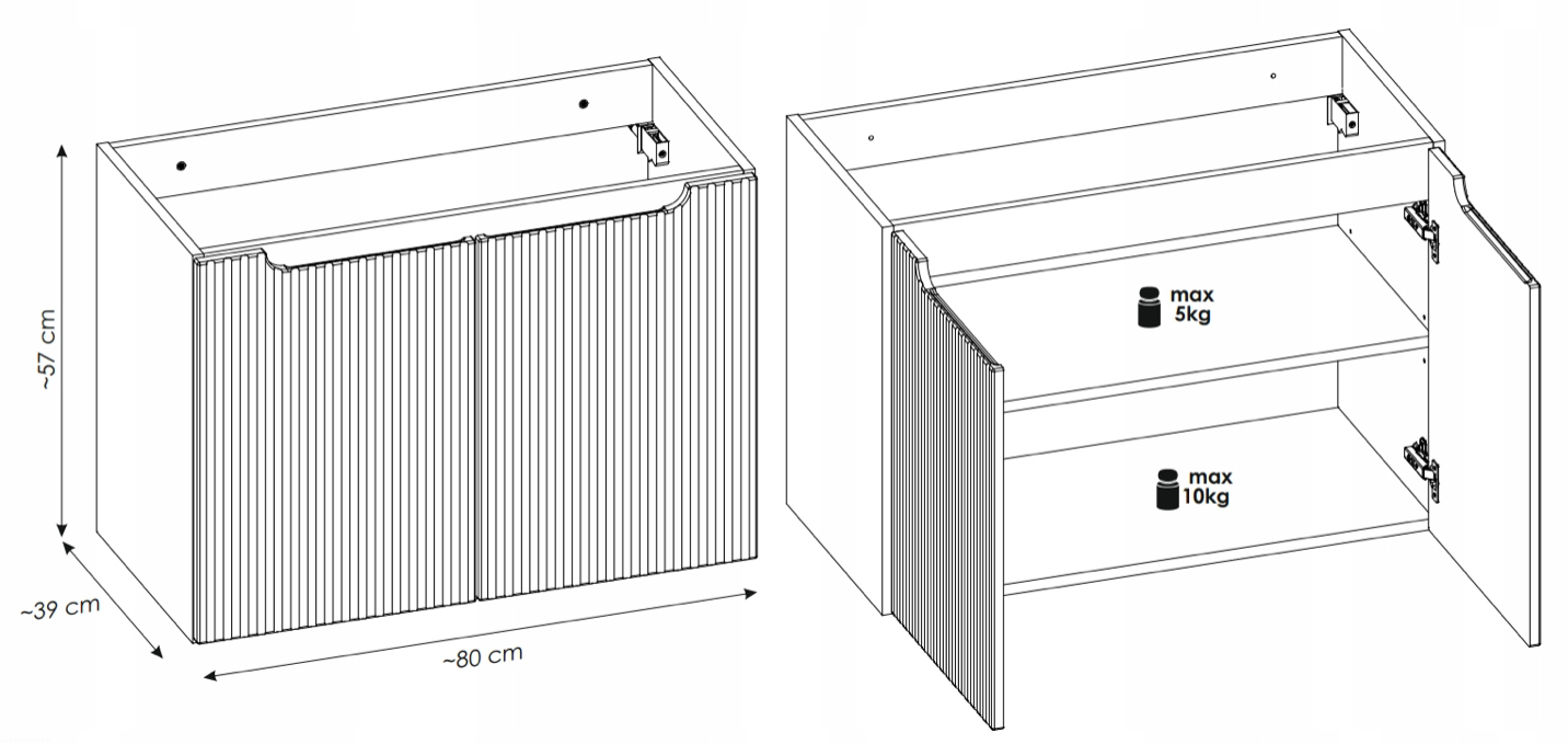KASZMIROWA ryflowana szafka NOVA CASHMERE 82-80 2D z blatem 80 cm WHITE