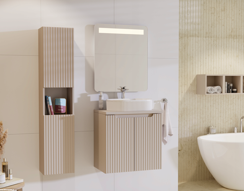 Meble łazienkowe NOVA CASHMERE to hołd dla harmonijnego, minimalistycznego designu i praktyczności, przywołujący myśli o codziennym użytkowaniu i potrzebie trwałych rozwiązań. Oparta na prostych, prostopadłościennych formach, meble NOVA emanują elegancją, której siła tkwi w ich subtelnym, ponadczasowym designie.