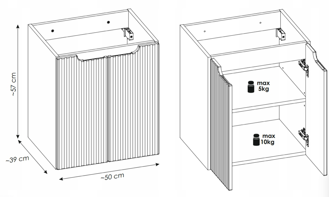 KASZMIROWA szafka z blatem 50 cm NOVA CASHMERE 82-50 2D RYFLOWANY front