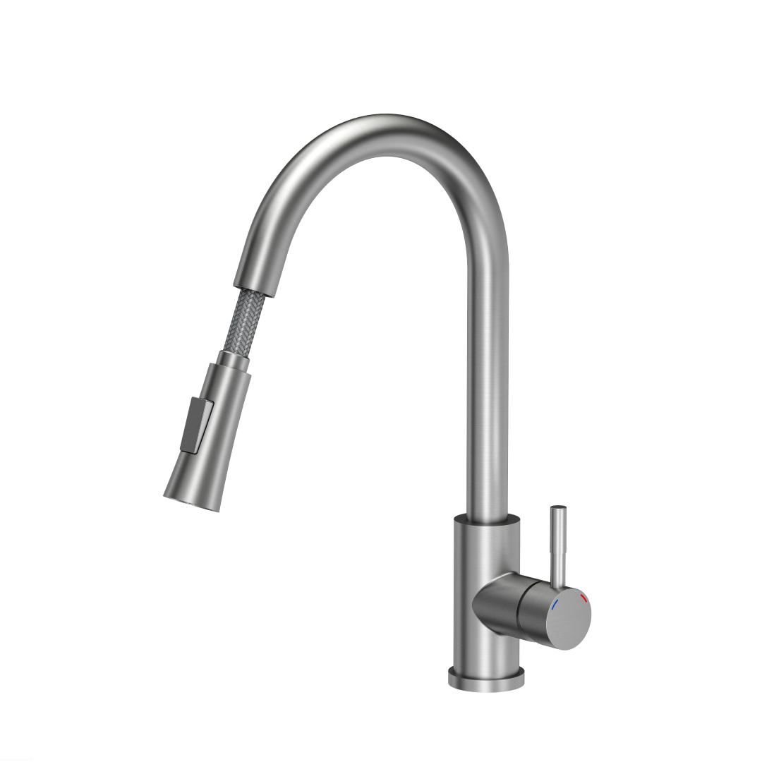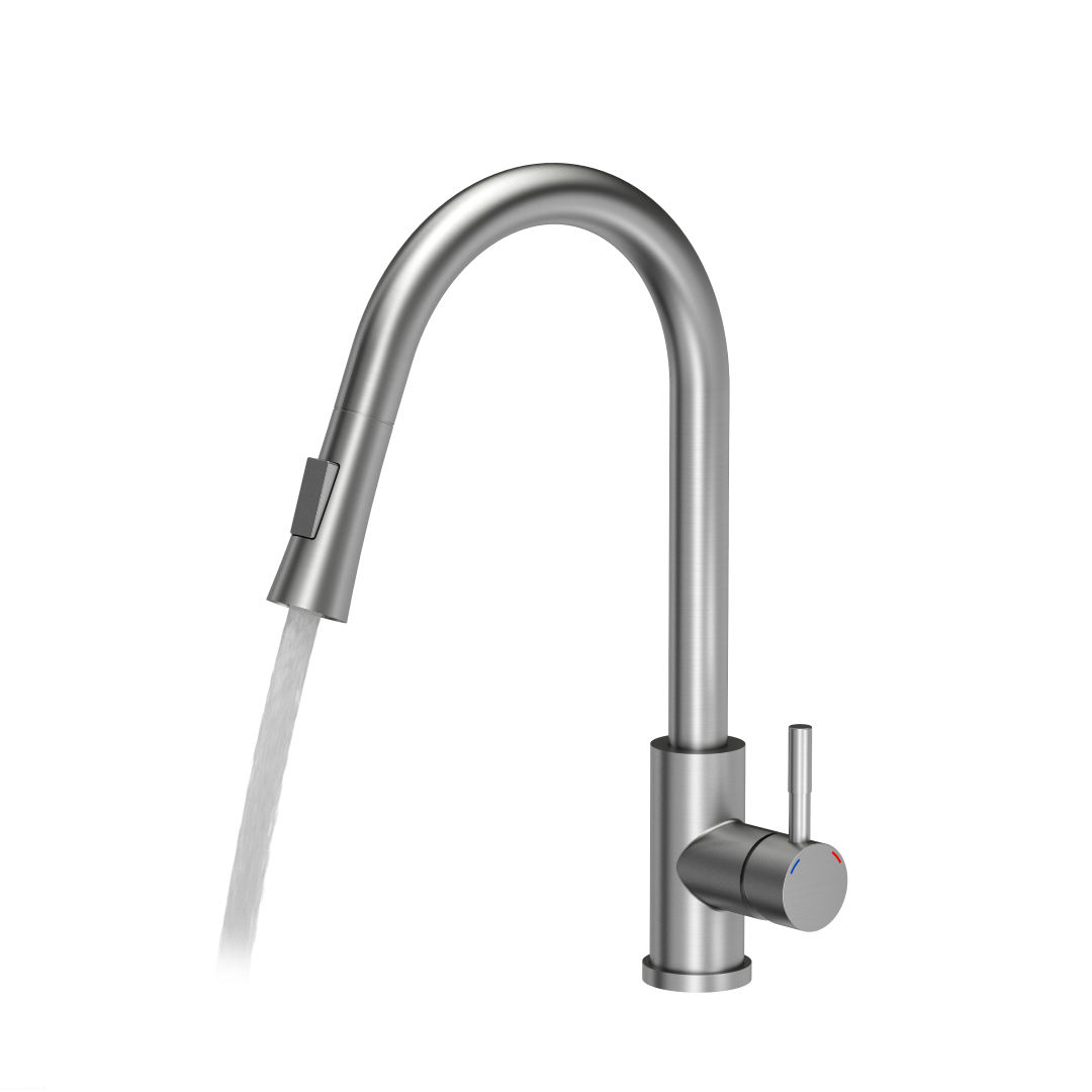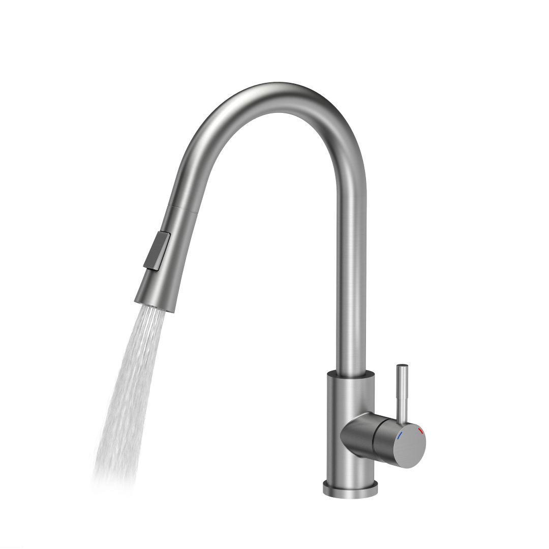 JULIA SteelS stalowa bateria kuchenna z wyciąganą wylewką i prysznicem