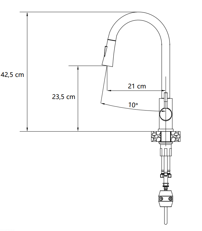- W komplecie 2 wężyki przyłączeniowe G3/8 cali dł 40cm, mocowanie QFix, perlator, instrukcja z gwarancją