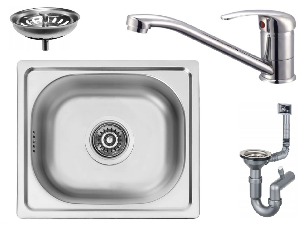MIKA ZLEW STAL WPUSZCZANY MAŁY 33x38CM + SYFON + BATERIA JOHNa