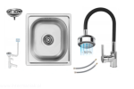 MIKA ZLEW STALOWY mini MAŁY 33x38CM + SYFON + bateria