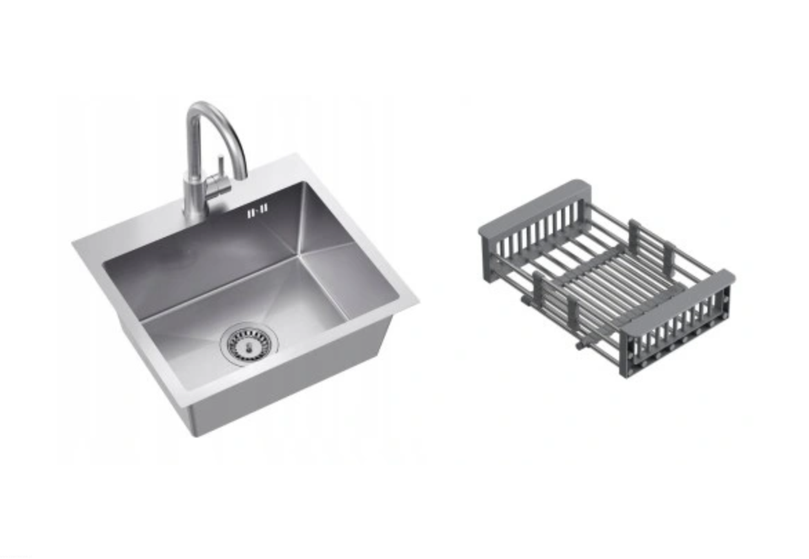 QUADRON LUKE 100 zlewozmywak stalowy (50x45x20) z syfonem 1-komorowy b/o + bateria stalowa
