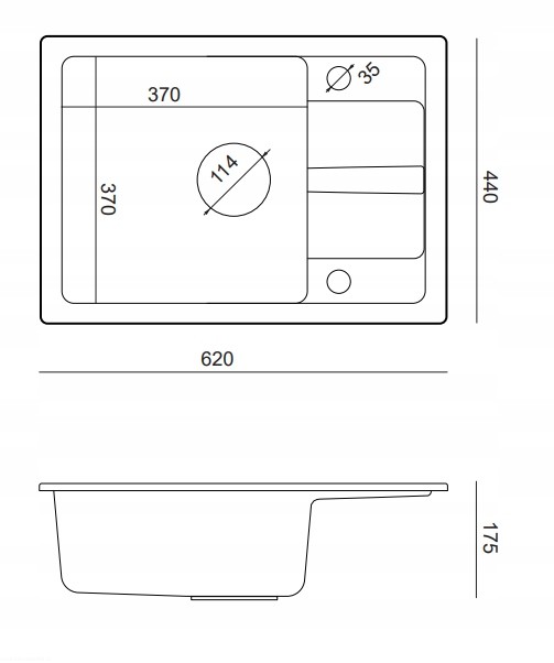 1. Zlewozmywak odwracalny o wymiarach 62x44x17,5 cm wykonany z GraniteQ z syfonem manualnym