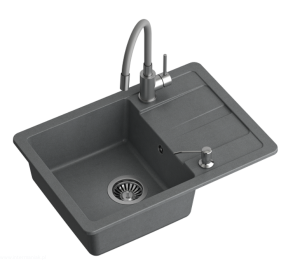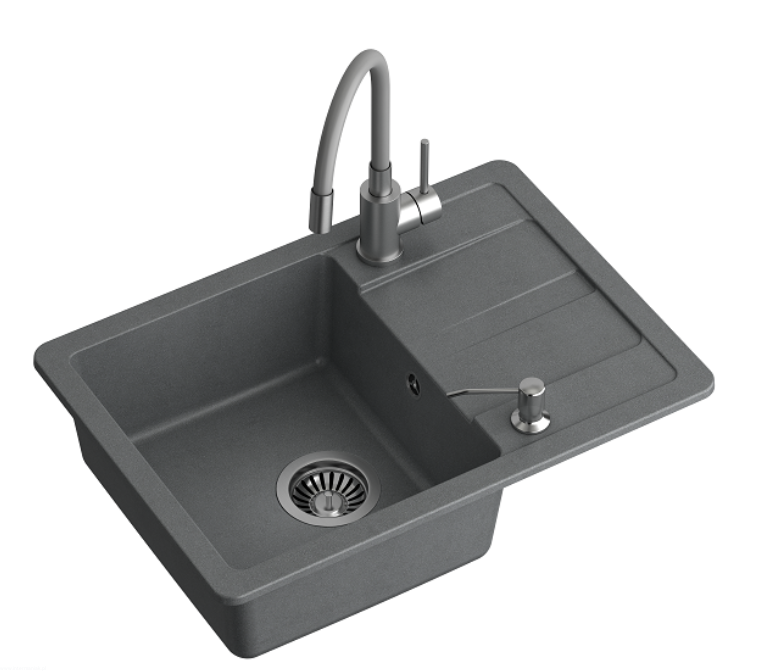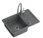 READY- SMART Szary zlewozmywak granitowy 1-k z/o (62x44x17,5) + bateria giętka z elastyczną wylewką + dozownik stalowy + syfon (1)
