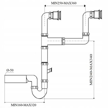 Syfon ręczny 50 mm do zlewozmywaków dwukomorowych