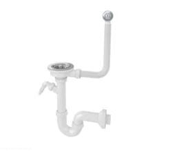 Syfon do zlewu 1-komorowego bez korka przeznaczony jest do modeli bez otworów lub takich, które mają jeden otwór na baterię lub dwa – w tym jeden na dozownik do płynu do naczyń, drugi na kran. Ruchome, wyjmowane sitko w odpływie umożliwia szybkie pozbycie się zalegających w nim resztek jedzenia i innych nieczystości, tym samym chroniąc instalację przed zatkaniem. Rury syfonu są wyprofilowane tak, aby w szafce było jak najwięcej miejsca, pozwalając na wygodną organizację systemów do segregacji śmieci. Model do zlewów wykonanych z granitu oraz kompozytowych z okrągłym przelewem. Możliwość podłączenia zmywarki. Standardowa średnica odpływu – 3,5 cala.