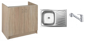Zlewozmywak stalowy 1-komorowy z ociekaczem, nakładany na szafkę plus Bateria