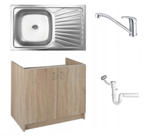 Szafka 60x80 dąb+ zlewozmywak + bateria b635
