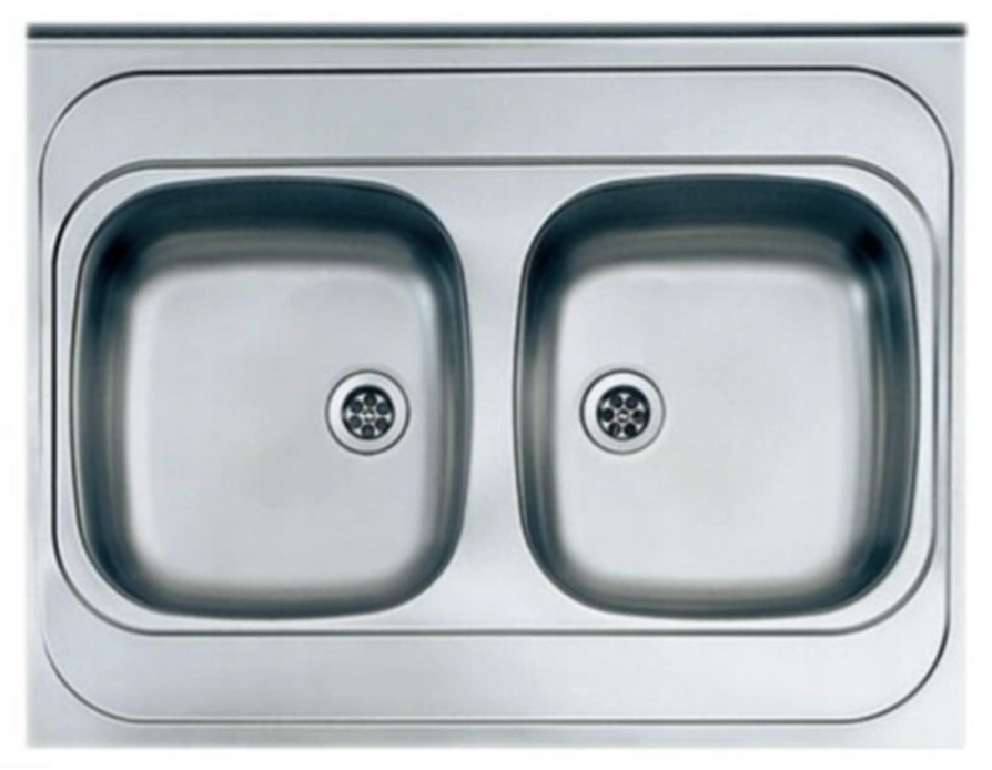 Zlewozmywak stalowy dwukomorowy, nakładany na szafkę