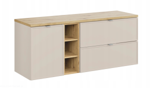 Szafka łazienkowa wisząca kaszmir 140 cm z koszem na pranie, wybór uchwytów