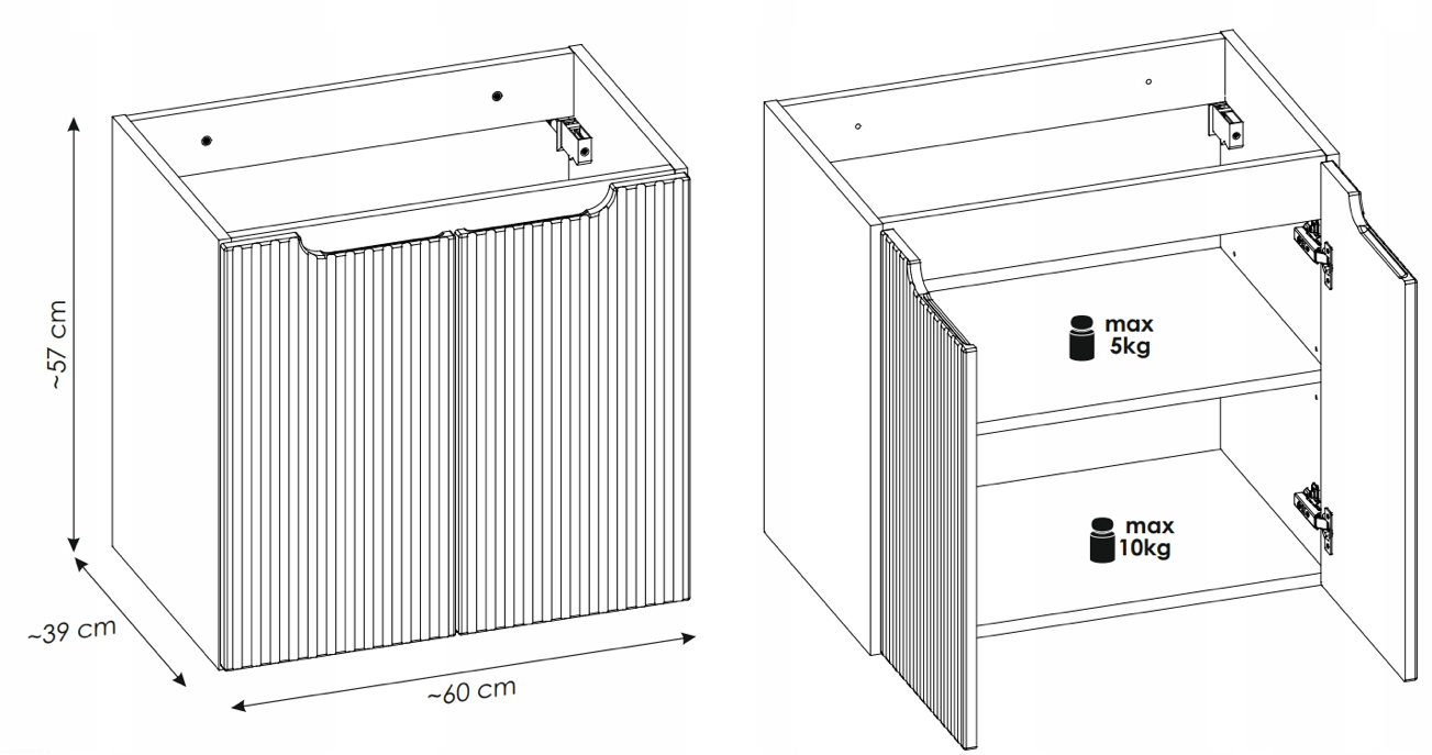 BIAŁA szafka łazienkowa z blatem 60 cm NOVA WHITE 82-60 2D RYFLOWANY front