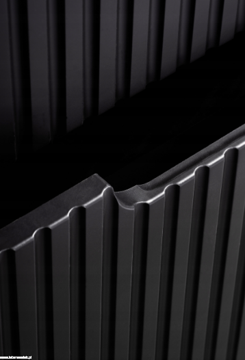 Fronty mebli zdobią pionowe ryflowania, dodając kolekcji miękkiej głębi i unikalnego charakteru.