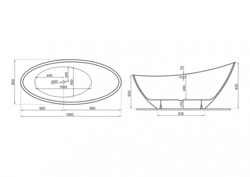Wanna wolnostojąca ZOE 180 x 80 cm POLIMAT