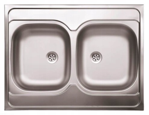 Nowoczesny zlewozmywak stalowy dwukomorowy, nakładany