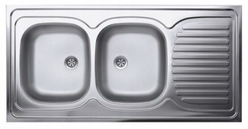 Nowoczesny zlewozmywak stalowy dwukomorowy, nakładany