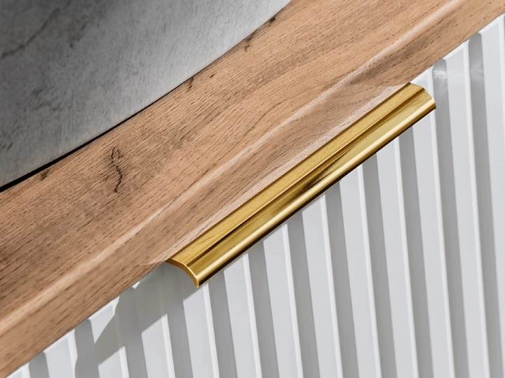 to nowoczesne i funkcjonalne meble łazienkowe, które łączą elegancki design z trwałością i wygodą użytkowania. Charakterystyczne dla tej serii są ryflowane fronty, które nadają meblom lekkości i nowoczesnego stylu, a uchwyty w cenie dostępne są w trzech wariantach kolorystycznych: złotym połysku, chromie połysku oraz czarnym macie, co pozwala dopasować meble do indywidualnej aranżacji łazienki. Szafki łazienkowe Adel wykonane są z wytrzymałych materiałów, takich jak płyta MDF i płyta laminowana, odporne na wilgoć i codzienne użytkowanie. Meble z tej kolekcji dostarczane są w paczkach do samodzielnego montażu, co ułatwia transport i instalację w każdym wnętrzu. Dzięki połączeniu funkcjonalności, estetyki i wysokiej jakości wykonania, kolekcja Adel to idealny wybór dla osób poszukujących trwałych, nowoczesnych mebli łazienkowych, które łączą praktyczne rozwiązania z eleganckim wyglądem i komfortem codziennego użytkowania.