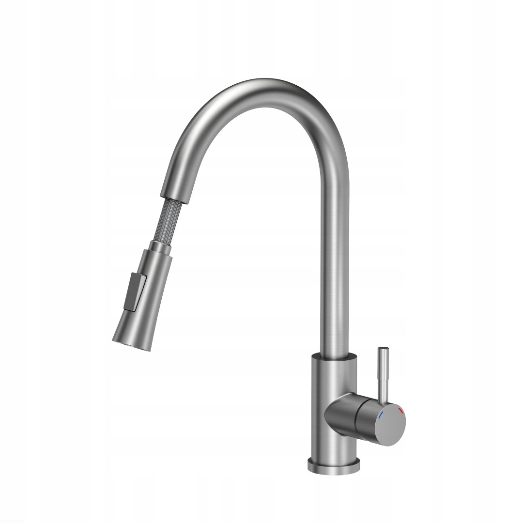 JULIA SteelS stalowa bateria kuchenna z wyciąganą wylewką i prysznicem