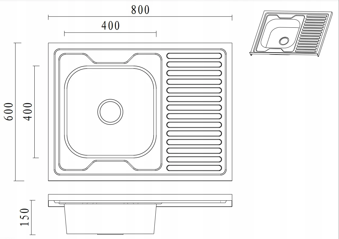 - Długość zlewozmywaka: 80 cm