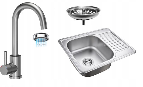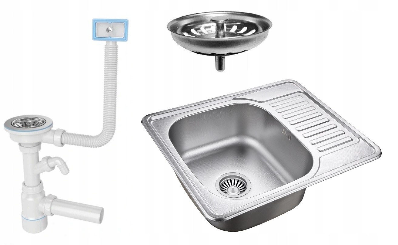 Zlew stalowy LEN DEKOR + syfon + BATERIA