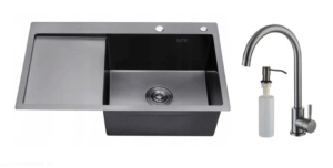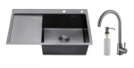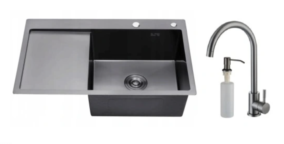 Zlew stalowy grafit lewy ociekacz 78x49 NAYES + bateria + dozownik + syfon