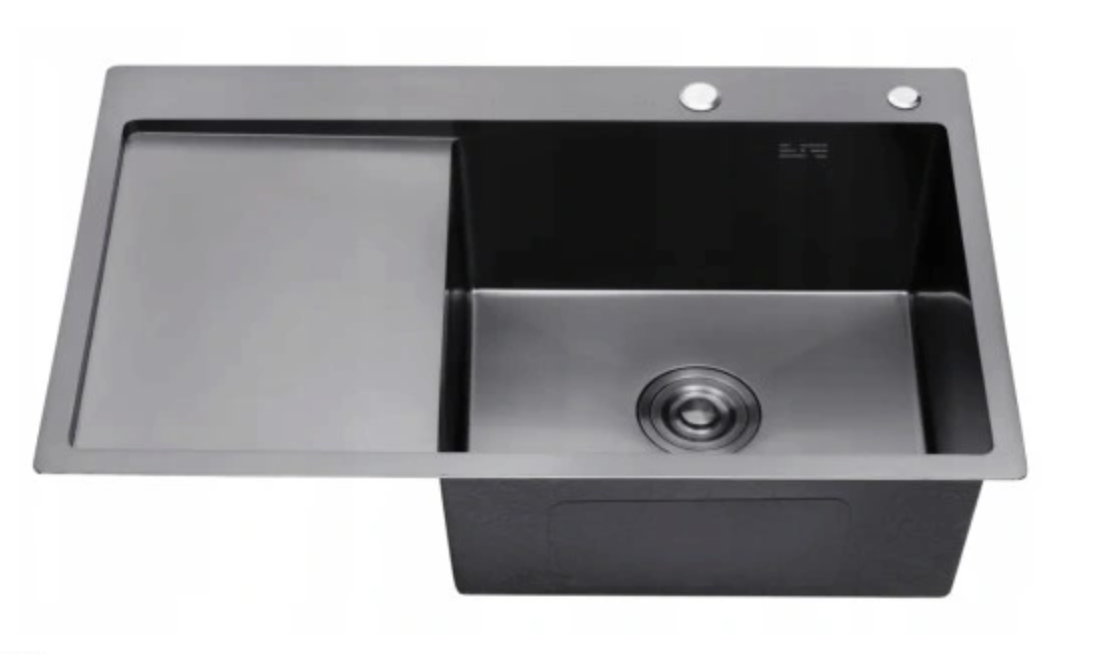 Zlew stalowy czarny grafit jednokomorowy z lewym ociekaczem 78x49 NAYES
