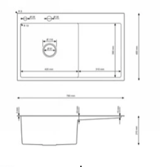 - Wymiar zlewozmywaka: 780 mm x 490 mm x 210 mm