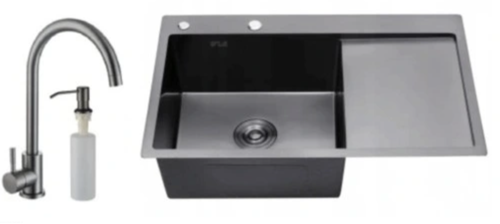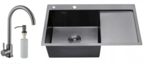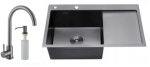 Zlew stalowy grafit prawy ociekacz 78x49 NAYES + bateria + dozownik + syfon