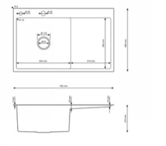 - Wymiar zlewozmywaka: 780 mm x 490 mm x 210 mm