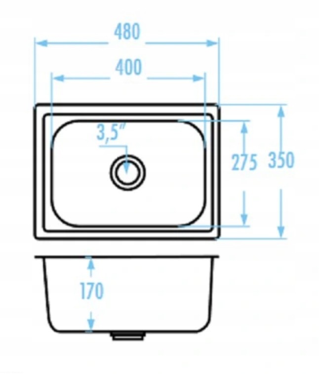 Zlewozmywak stalowy wpuszczany, 1-komorowy, bez ociekacza, w zestawie z syfonem. Idealny do małych kuchni.
