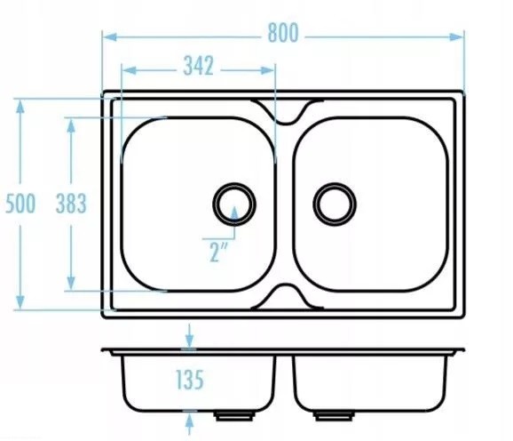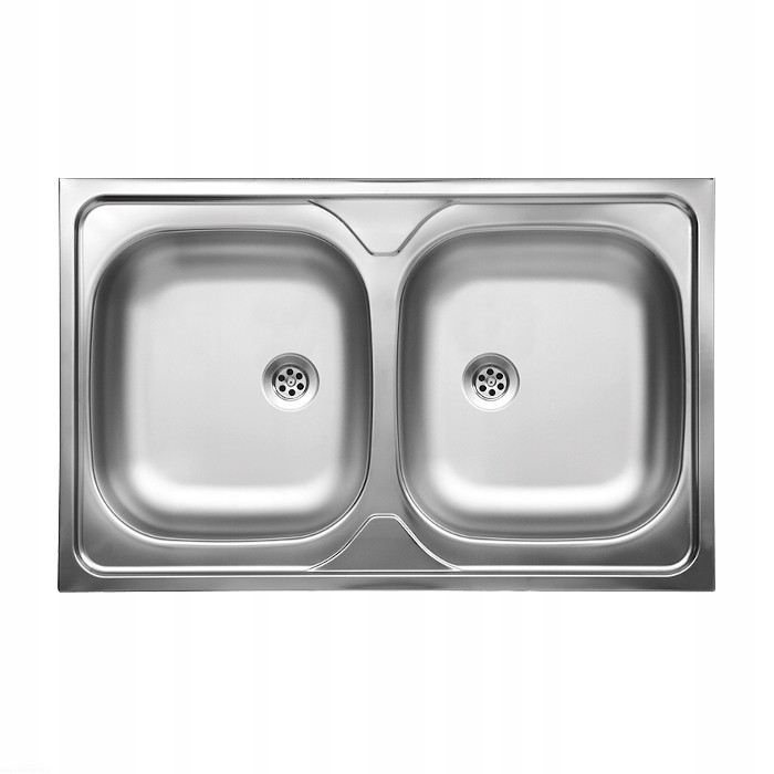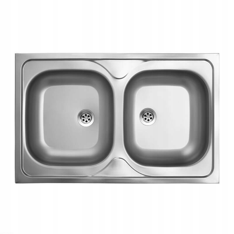 Zlewozmywak stalowy nakładany, dwukomorowy, bez ociekacza, w zestawie z syfonem. Zlewozmywak świetnie sprawdza się w dużej lub niewyposażonej w zmywarkę kuchni.
