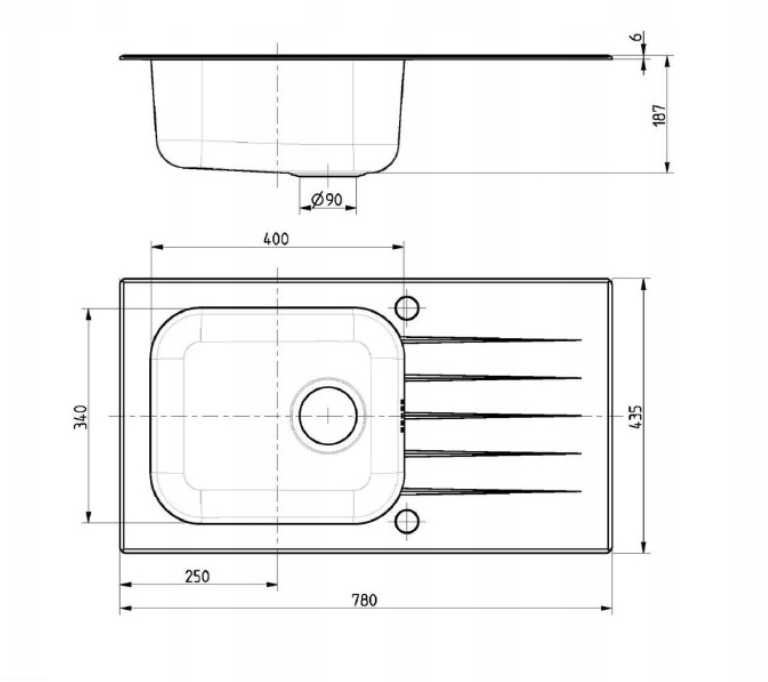 • fabrycznie wykonane otwory Ø 35 mm do montażu baterii, pokrętła Pop-up, dozownika