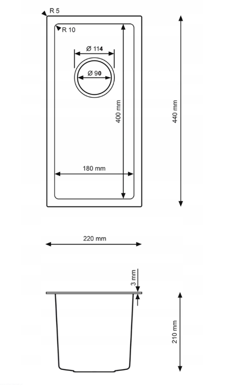 Zlewozmywak jednokomorowy NAYES 22x44 stal Inox