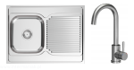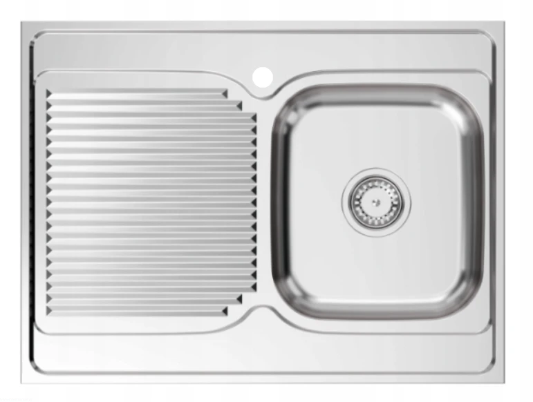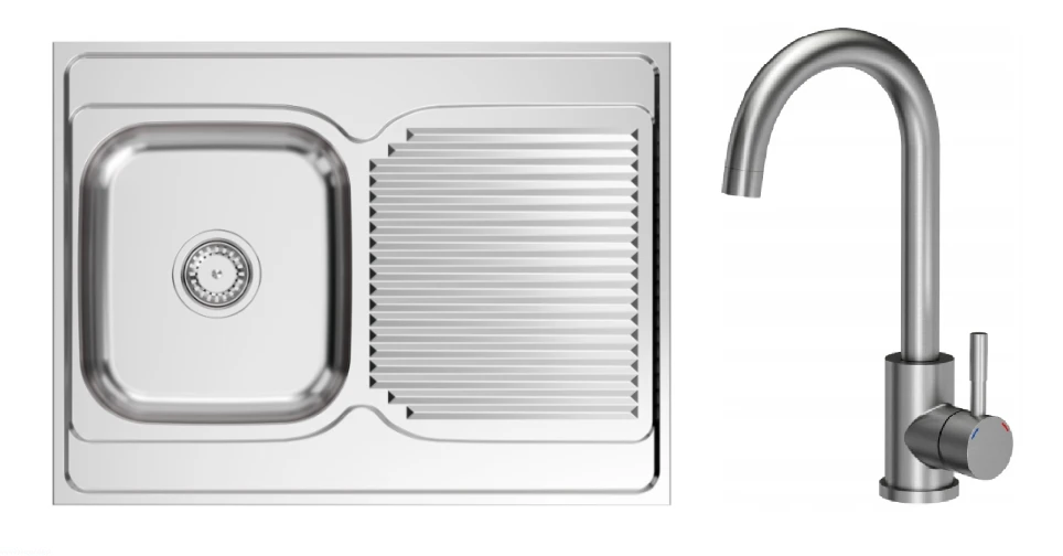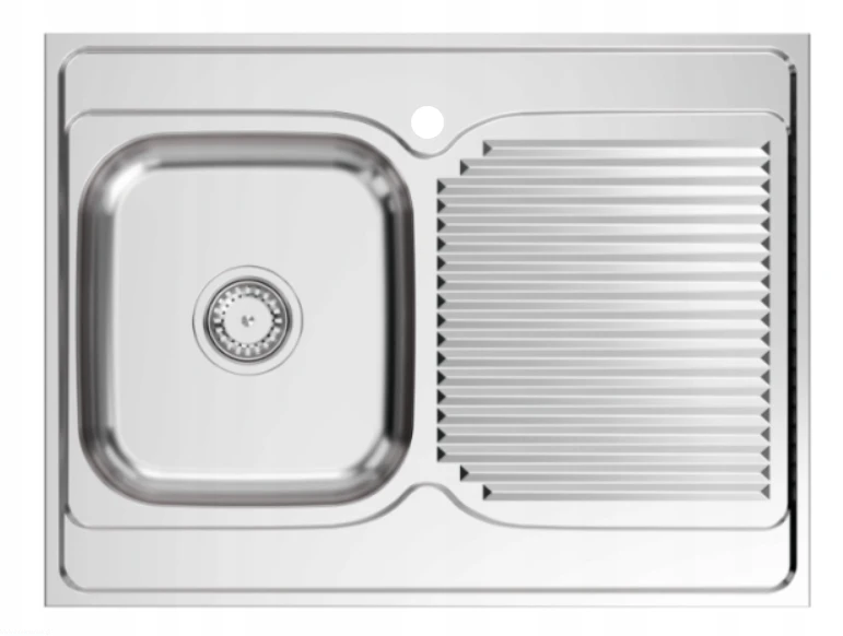 Zlewozmywak jednokomorowy STALOWY NAKŁADANY gładki 60x80 + SYFON + BATERIA