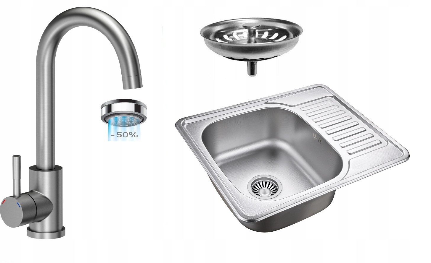 Zlewozmywak jednokomorowy + syfon + BATERIA