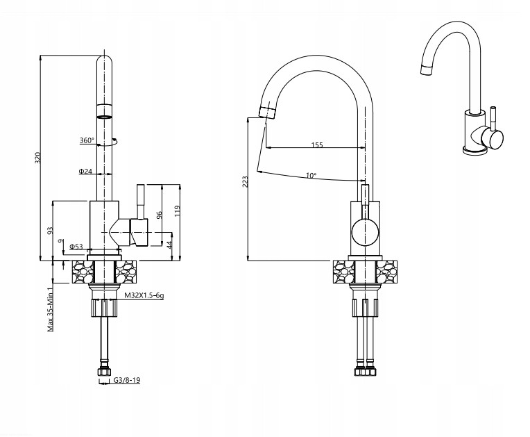 - Wysokość wylewki: 223 mm