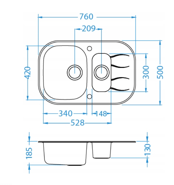 - Wymiary zlewozmywaka: 760 x 500 mm