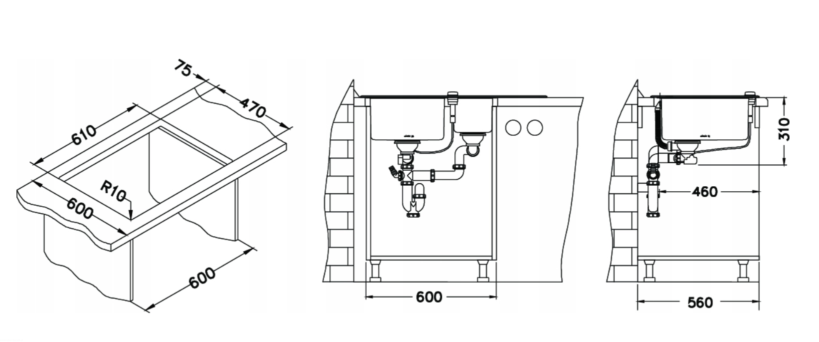 - Wymiary wycięcia w blacie: 440 x 470 mm