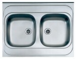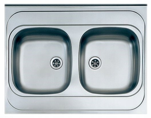Zlewozmywak stalowy dwukomorowy, nakładany na szafkę z listwą przyścienną